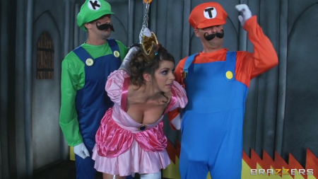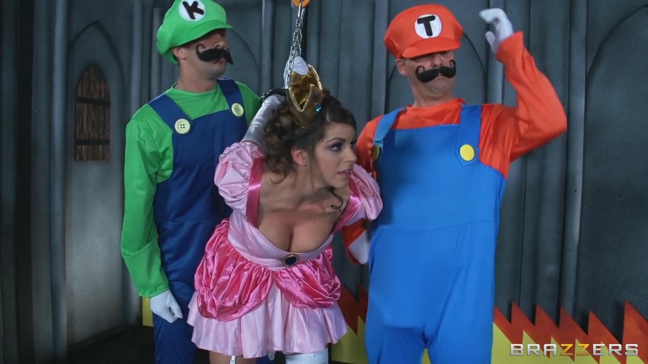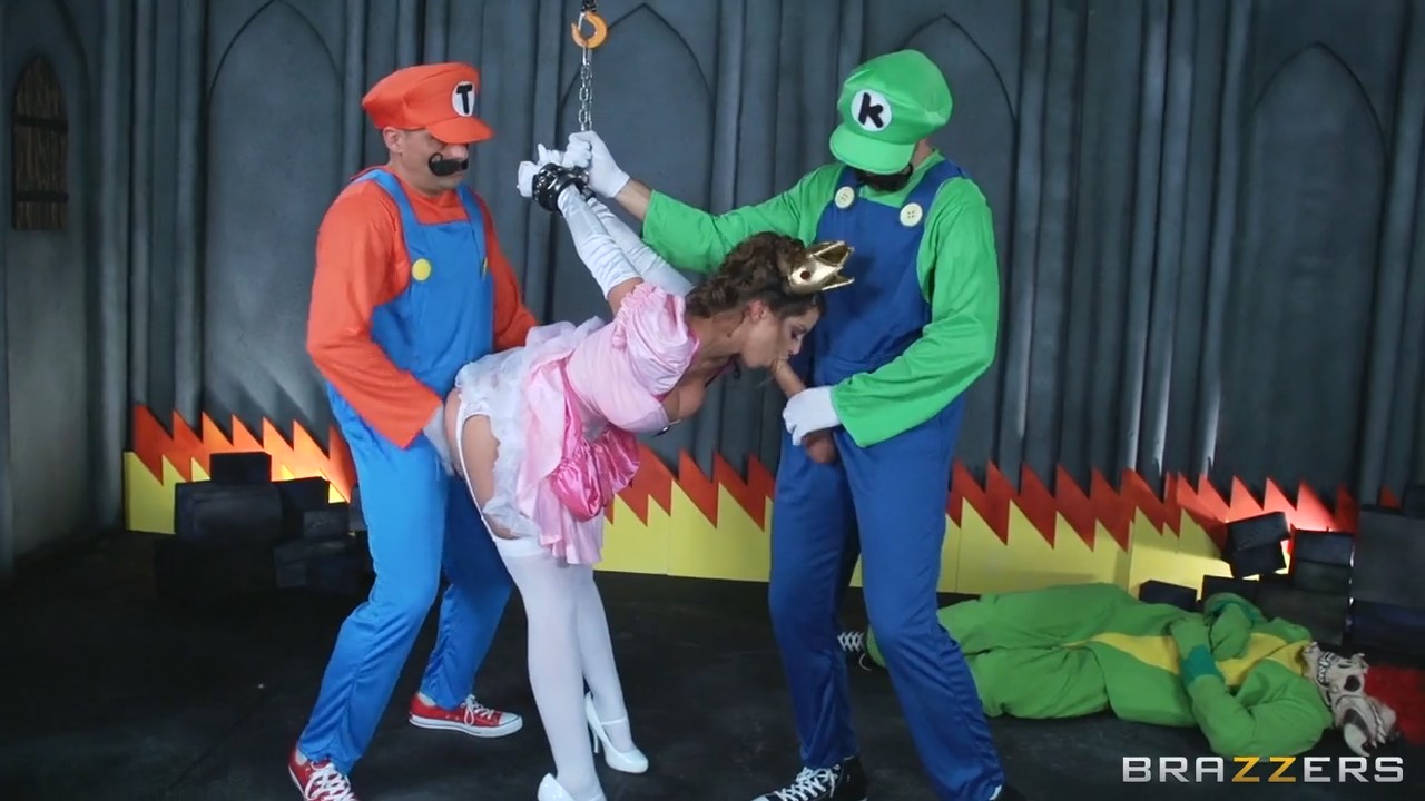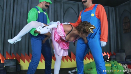 Порно пародия на серию игр Марио. Как известно, в игре водопроводчик итальянского происхождения должен спасти принцессу (в этот раз герой действовал со своим братом). Но вот только принцесса не очень жаждала спасения - девушку со связанными руками дракон хлестал по аппетитной заднице и ей очень нравилось. Когда же подоспела помощь, симпатичная телка даже ругаться стала. Но после победы над злодеем и невинных поцелуйчиков, которые спасатели взяли как плату за свой подвиг, Марио и его брат задумались над тем, что увидели ранее. И вот тут то до ребят дошло какую награду они заслужили. Братья отпердолили принцессу в рот и в вагину, а после обкончали привлекательное личико.