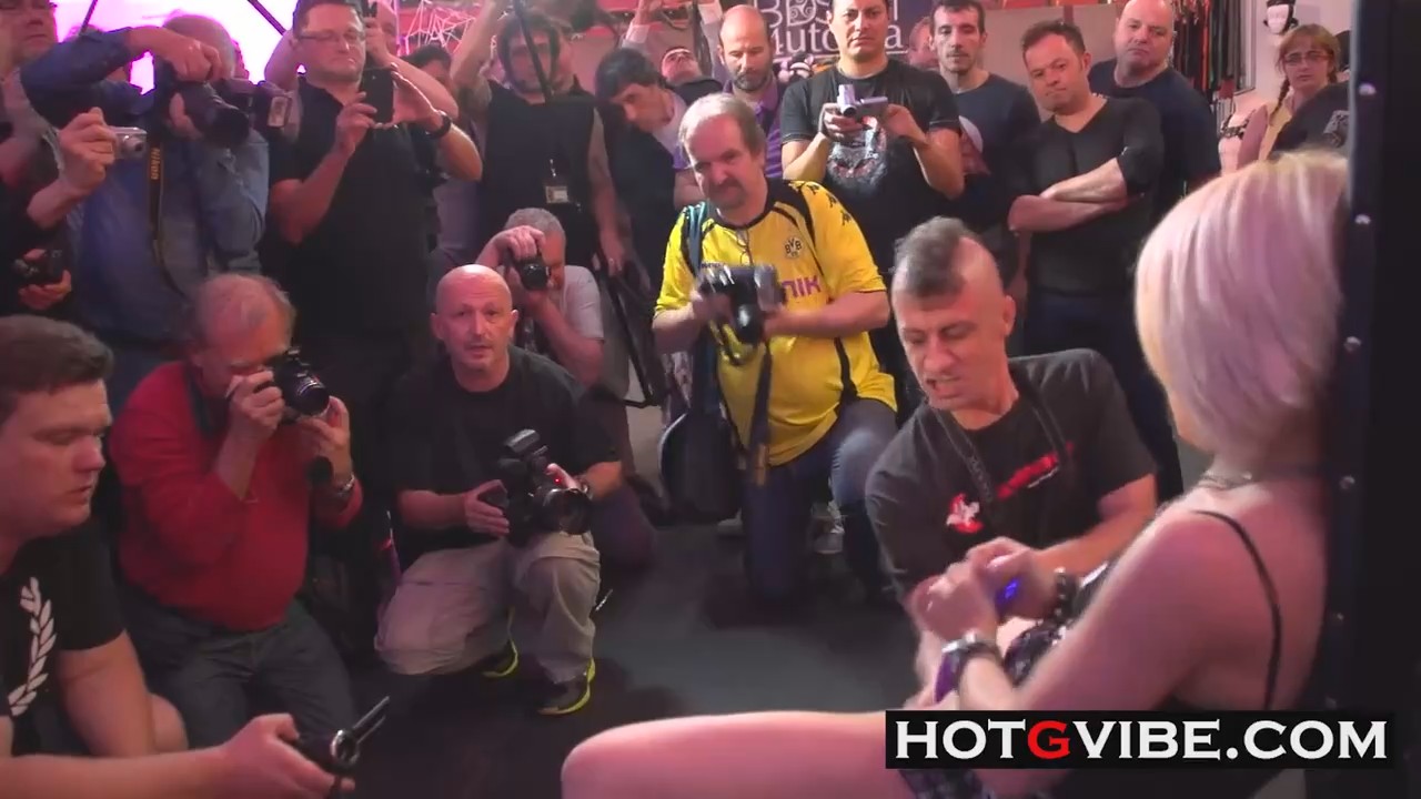 Симпатичная девушка обожает быть в центре толпы. От устремленных на нее восхищенных глаз милашка просто приходит в неописуемый восторг. Может именно этим объясняются ее вызывающие действия. Развратная шалунья получает вибратор в свое пользование и устраивает целое шоу посреди большого помещения. Яростно короткостриженная сучка дрочит себе, но видя, что девушке требуется помощь, мужчина с ирокезом (который и подогнал очаровашке вибратор) помогает подруге достичь мощного оргазма. Вдвоем ребята лихо справляются с поставленной задачей и мощные струи секретной жидкости заливают весь пол.