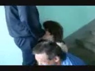 Ужранная парочка отдыхает в подъезде. Как это и бывает, к алкоголикам подошел кореш, который без сомнений засунул в рот чужой чикуле свой вялый писюн. Ничего не соображающая шмара приоткрыла рот "на автомате" и отсосала незнакомому бухарику, получи в благодарность полный рот спермы. Самое интересное, что товарищ женщины, сидевший рядом, даже бровью не повел- видимо мужчину устроила такая ситуация (ведь с "братаном" нужно делиться абсолютно всем).