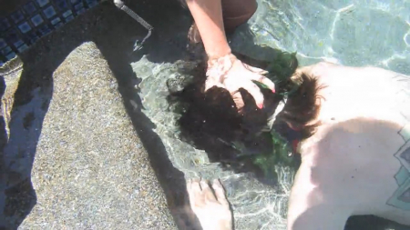 Озабоченная сиделка, получив полную власть над молодым человеком, прикованном к инвалидному креслу, наконец-то воплотила свои ненормальные мечты в жизнь. Как только пара осталась наедине (больше никого в доме не было), светловолосая милашка повезла парня к бассейну. Дойдя до воды, безжалостно скинула она парня в воду, но через некоторое время вытащила голову мужчин из воды и засунула в рот обескураженному парню свою ногу. Добившись таким образом от "клиента" послушания, похотливая шлюшка заставила парня вылизать ее дырку. Под жарким солнцем очаровашка получила огромное удовольствие от кунилингуса, а затем увезла подопечного в дом.