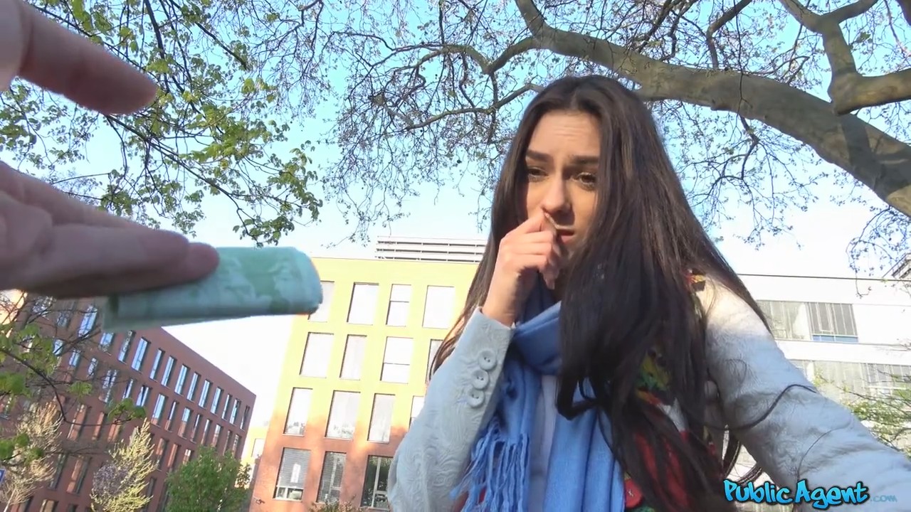 Увидев, что очаровательная девушка расстроена и растеряна, мужчина пришел на помощь. Оказалось, что милашка прилетела к своему бойфренду, но ее никто не встретил - молодой человек девушки в данный момент был на работе и согласился встретить милашку лишь на следующий день. Вот тут то и вырисовалась еще одна проблемка - у шлюшки не было с собой денег (ни на гостиницу, ни на еду). На помощь девушке, как герой, пришел все тот же незнакомец - предложил сексуальной телочке показать за деньги сиськи. Далее события развивались по классическому сюжету - уединившись в парке с мужчиной, деваха отсосала и попрыгала на члене.