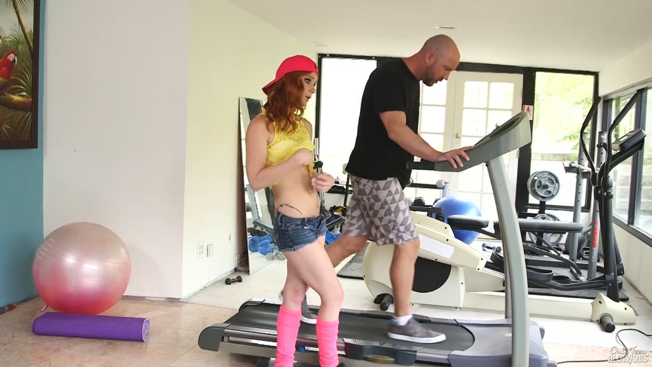 Рыжеволосая конопушка страстно захотела ощутить член в себе, и абсолютно неважно в какой дырке. Девушка застала любовника как раз на беговой дорожке уже вымотавшимся. Предложив расслабиться мужчине, решительно милашка сдернула с мужчины шорты, встав перед этим на колени перед избранником. В общем то, мужчина сопротивляться не стал - да и кто бы отказался от классного минета?
