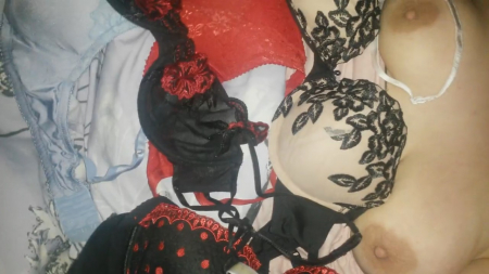 Идеальная жена, на которую можно вздрочнуть - спящая. Видимо, именно так подумал мужчина, потому что едва заметив, что любимая уснула, он обнажил большую грудь дамочки и принялся за дело. С чувством, толком, расстановкой дрочер продумал все детали. Поскольку мужчину безумно возбуждают лифчики, то он собрал все предметы женского белья, которые имелись у жены в наличии, и обложил неподвижно лежащую подругу, даже несколько на себя одел, и продолжил теребить шкурку.