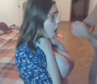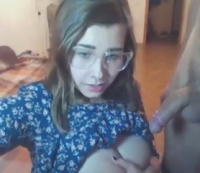 Девушка "на любителя" удовлетворяет любовника на потеху развратной публике. Мастерски миловидная особа наяривает длинный хуец, абсолютно не помогая себе руками. Очкастая телочка с обнаженной большой грудью достаточно быстро справилась с такой легкой задачей, как доведение до оргазма, и вскоре потоки семенной жидкости устремились на личико, забрызгав даже очки - но это девушку не только не смутило, но и очень ей понравилось.