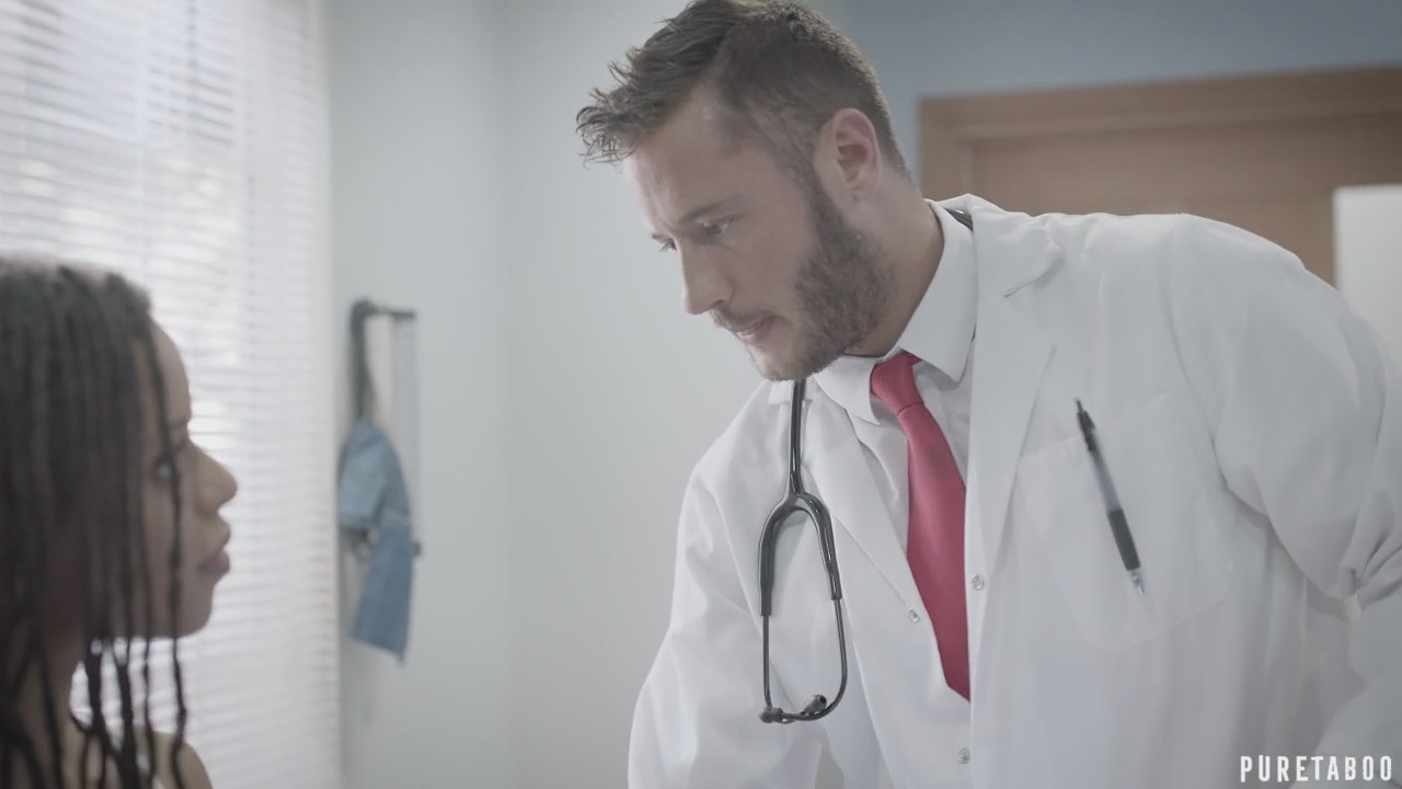 Очаровательная негритяночка доверилась доктору и стала проходить различные тесты (чтобы протестировать лекарственный аппарат). Вот только вместо настоящего врача зашел другой мужчина в халате (о чем, естественно, милаха и не догадывалась). Молодому человеку явно было плевать на тесты - ему понравилась сама девушка, поэтому он предложил симпатюле сексом заняться - в научных целях, разумеется. некоторое время поколебавшись, сексапильная малышка все же согласилась и была хорошенько выебана на кушетке.