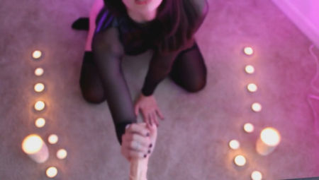 Привлекательная цыпа в чулочках решила попрактиковаться, чтобы улучшить свое мастерство в оральном искусстве - как знать, может в будущем пригодится (да и к тому же милашка просто обожает сосать, получая от самого процесса невероятное удовольствие). В общем, стройная брюнетка сделала превосходный минет приклеенному на присоски резиновому хую - завораживающее зрелище.