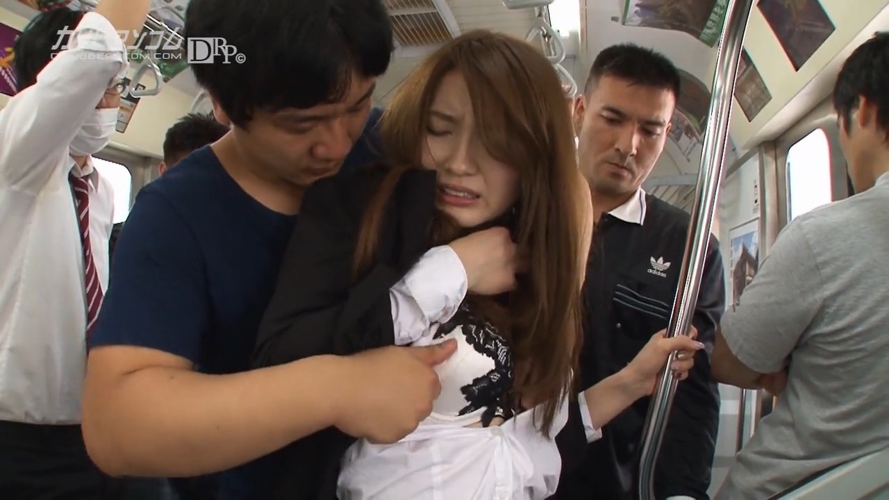 Симпатичная азиатка едет в поезде в метро. Неожиданно к девушке начал приставать стоящий рядом парень. А потом к нему присоединились друзья. Хулиганы в поезде изнасиловали азиатскую девушку. Парни достигли оргазма и закончали азиатке лицо.