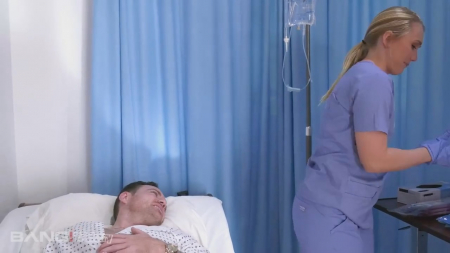 Если ты не можешь подкатить к даме обычным способом - подкати к ней на коляске. Успешный парень в очках-авиаторах не привык к отказам со стороны молодых пассий, пока не встретил социальную работницу - классную блондинку с торчащей из униформы круглой попкой. Увидев, как мило она откатывает инвалида-колясочника, он не увидел ничего зазорного в том, чтобы спросить ее номер в этот щепетильный момент. Она разозлилась на парня и отказала. Но тот не стал падать духом, а попросил друга привезти из магазина коляску и смирительную рубашку. Войдя в образ инвалида, он как бы невзначай упал с коляски прямо возле ее машины, и той ничего не оставалось делать, как отвезти его в больницу. И его боль все никак не унималась, ведь единственный способ сделать это - подрочить его член...