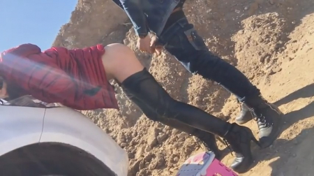 Красивая природа, пустырь, серебристый джип и камера на штативе. Что еще нужно людям, чтобы снять отличную порнуху. Стильная и стройная брюнетка в дерзких очках по щелчку пальцев уже насасывает письку своего парня, а затем быстренько скидывает узкие джинсы, чтобы тот вошел в нее. Но даже учитывая красоту этой девушки, при сношении раком у него слегка падает член. Он сам в шоке, но девушка не теряется и начинает вновь делать ему минет. Но счастье скорострела продлится недолго - скоро снова повторится эта же ситуация, после чего он резко кончил в нее и отпрыгнет из кадра, чтобы больше не позорить свое лицо.