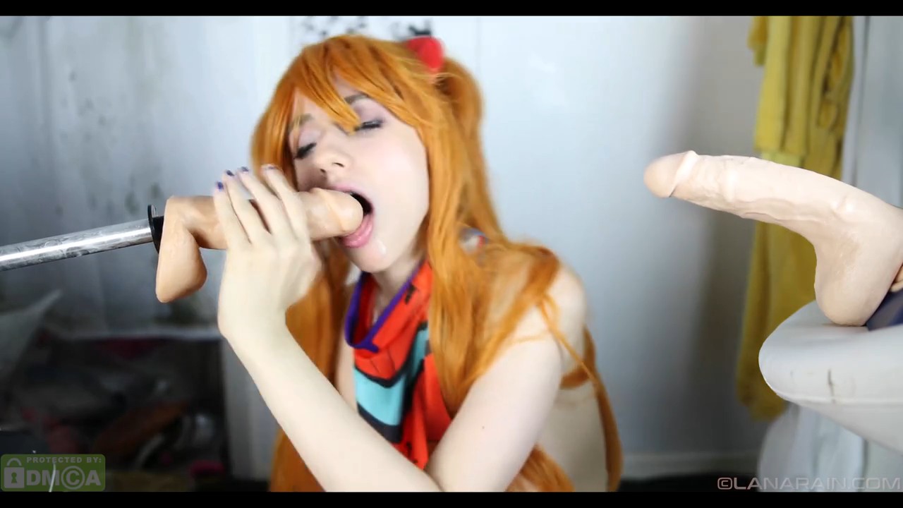 Молодая рыжая куколка решила усовершенствовать свои навыки в оральном сексе. Симпатяга установила два резиновых члена на уровне рта и принялась то нежно то страстно сосать игрушки.