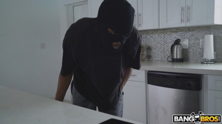 Чувак долго думал, как же подкатить к этой татуированной пошлой соседке. Все дело в том, что он, увы, негр, а такие черные парни девчонке не по вкусу. Но он нашел идеальный вариант, чтобы убить двух зайцев сразу - как подшутить над своей расовой принадлежностью и как попробовать трахнуть ненасытную брюнетку. Он надел маску бандита, типа негр-гангстер, дождался момента, когда та будет снова мастурбировать у себя в душе, и нагрянул к ней в дом. Чтобы та не орала, он быстро снял маску, но поняв, что вторая часть плана не сработала, намекнул, что он все-таки тут бандит, и расстегнул ширинку.