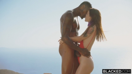 Приехав на пятизвездочный курорт, рыжая красотка быстренько нашла себе занятие по душе - пока загорала в шезлонге, случайно переглянулась с подкаченным черным парнем. И не прогадала - когда она отлучилась от соблазнявшего ее белого паренька под предлогом срочного выхода по женским делам, она сразу взяла ниггера под ручку и засеменила к открытому балкону, где увидела этот здоровый хуй. Сосать его оказалось непростой задачей, зато пиздой она смогла оседлать этот шланг почти на полную длину, постанывая и скуля от счастья глубокого проникновения в киску.