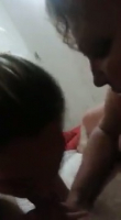 Мужчина лежит на диване, а над его хуем работает женщина, старательно насасывая его ствол. Он остался недоволен, что работает только одна, поэтому обратился ко второй: "Ленка, ты идешь сосать, сука ты?". Дамы уже привыкли к такому обращению от кавалера, им даже нравится когда им говорят грубости. В процессе он еще пожаловался, что вторая Лена (да, их одинаково зовут) не хочет лизать ему очко, на что резонно ответили: каждая должна делать свое.