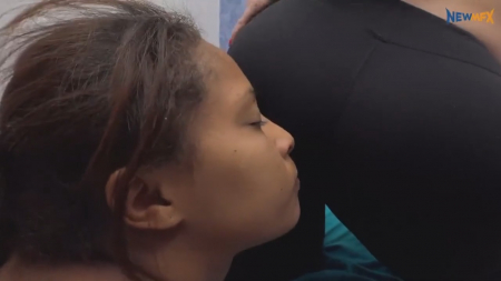 Хозяйка дома вместе с подружкой игрались с вилянием своих попок на диване, пока негро-корейского вида уборщица выполняла свою простую работу - смахивала пушистым ершиком пыль с картин в спальне. "Иди-ка сюда, сука!" - скомандовала подружка, а затем приказала наклониться и подставила свою жопу в лосинах. Но анилингуса через штаны ей показалось мало, и они на пару с подругой обнажили свои попки, чтобы уборщица поработала на славу, языком вылизав очко до блеска, отполировав его язычком. Сначала одной леди, а затем другой - нечего тут жульничать!