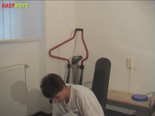 Молодой парнишка, которому дай бог, восемнадцать, сидел на силовом тренажере и чесал руки. Нет, он не героинщик - просто особо не понял, как на нем заниматься. Вовремя подоспевший кореш решил тоже не рассказывать, как качать бицуху, и принялся бегать на соседнем тренажере. Вечер начал наскучивать, поэтому белобрысый принял единственно верное решение - раздеться догола и улечься рядом на кровать, чтобы знатно помастурбировать. Второй, как увидел это дело, поспешил повторить все вышенаписанное, и через минуту они лежали друг с дургом и каждый дрочил сам себе, похотливо смотря на другого.